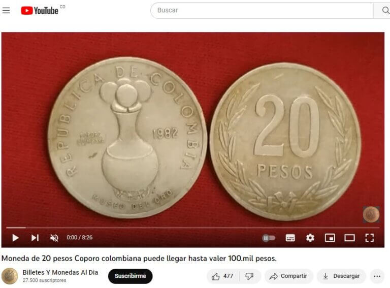 Nuevamente pongo un ejemplo con monedas de colombia, el ejemplar presentado en el video según el creador puede llegar a costar hasta 20 dólares, pero en realidad es una moneda que si bien ya no circula, es aún muy común de encontrar (popular moneda de kilo) por lo cual su valor real vendría siendo de 0,2 dólares.